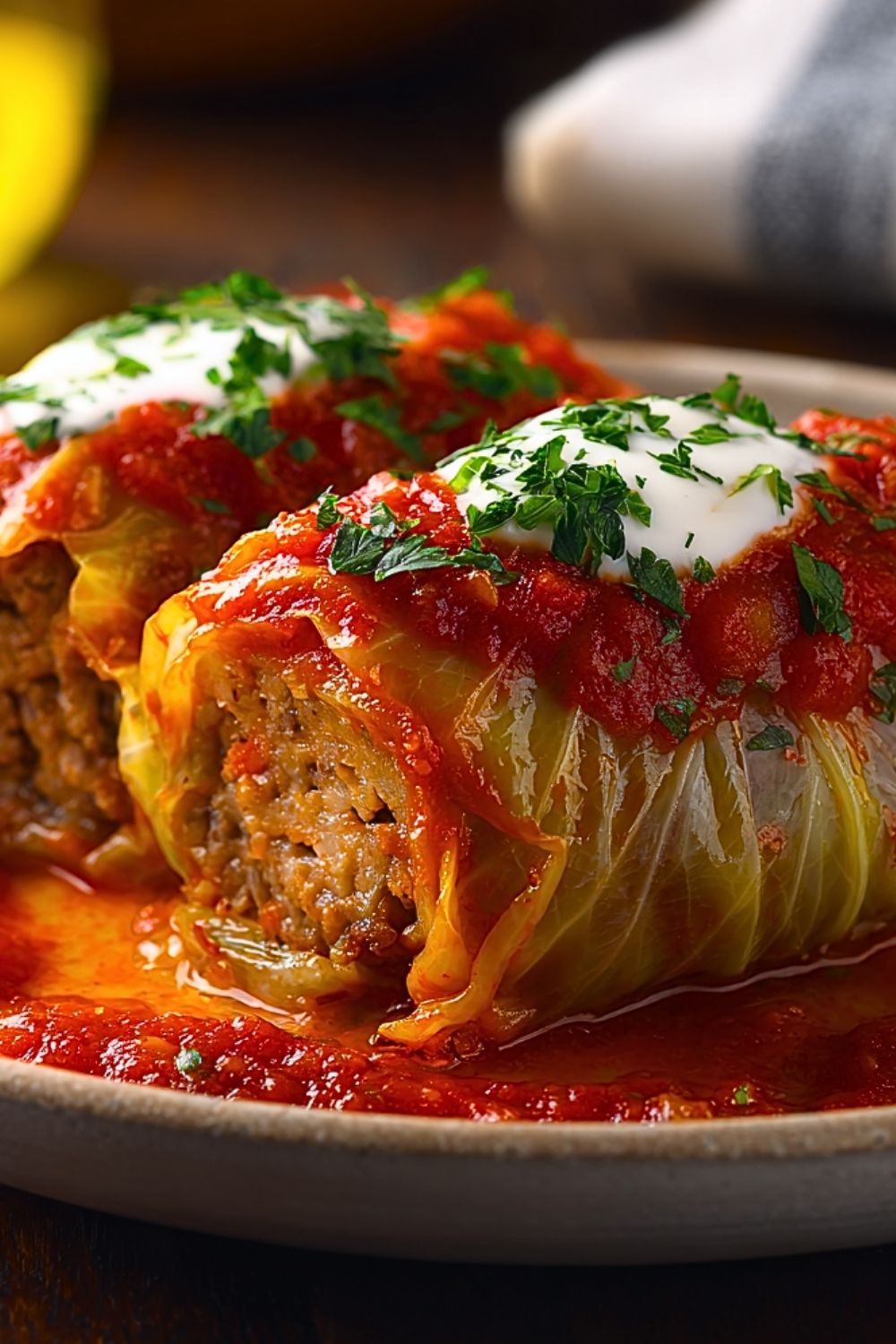 Carefully remove the rolls and spoon some of the sauce over the top. Garnish with fresh chopped parsley. Serve hot with sour cream on the side if desired.