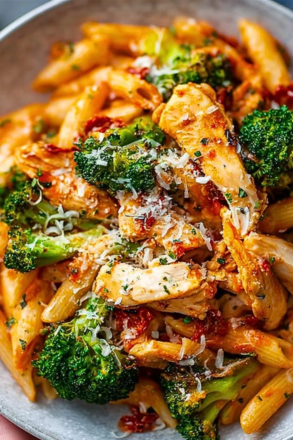 This dish brings so much flavor with very little fuss. The sun-dried tomatoes offer richness and umami, while the chicken adds protein and heartiness. The broccoli adds freshness, crunch, and color—and the penne perfectly soaks up every bit of that creamy tomato sauce. It’s a complete meal in one bowl, and it’s easy to tweak depending on what you have on hand. Whether you’re a pasta lover, a veggie enthusiast, or just need a one-pan dinner idea, this one deserves a spot in your weekly rotation.