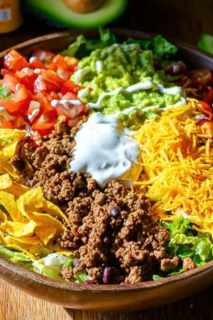 Taco Salad is best eaten fresh, but with a little planning, leftovers can be just as enjoyable. Store the components separately if you anticipate having extra. Keep the cooked ground beef in an airtight container in the fridge for up to 4 days. The chopped veggies can be stored in separate containers or resealable bags for about 2–3 days. If the salad is already dressed, it’s best eaten within a day to avoid soggy lettuce.