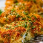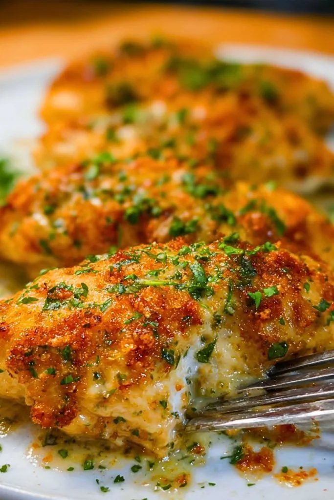 At 400°F (200°C), the chicken should bake for 25 to 30 minutes, depending on the thickness of the breasts. You’re looking for a golden, crisp topping and an internal temperature of 165°F (74°C) at the thickest part. Let the chicken rest for a few minutes before slicing — this helps the juices settle and keeps it tender.
