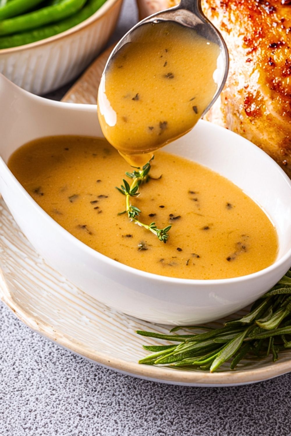 If you prefer an ultra-smooth gravy, strain it through a fine mesh sieve into a serving dish or gravy boat. This removes herb bits and any remaining solids, leaving behind a beautifully refined sauce.