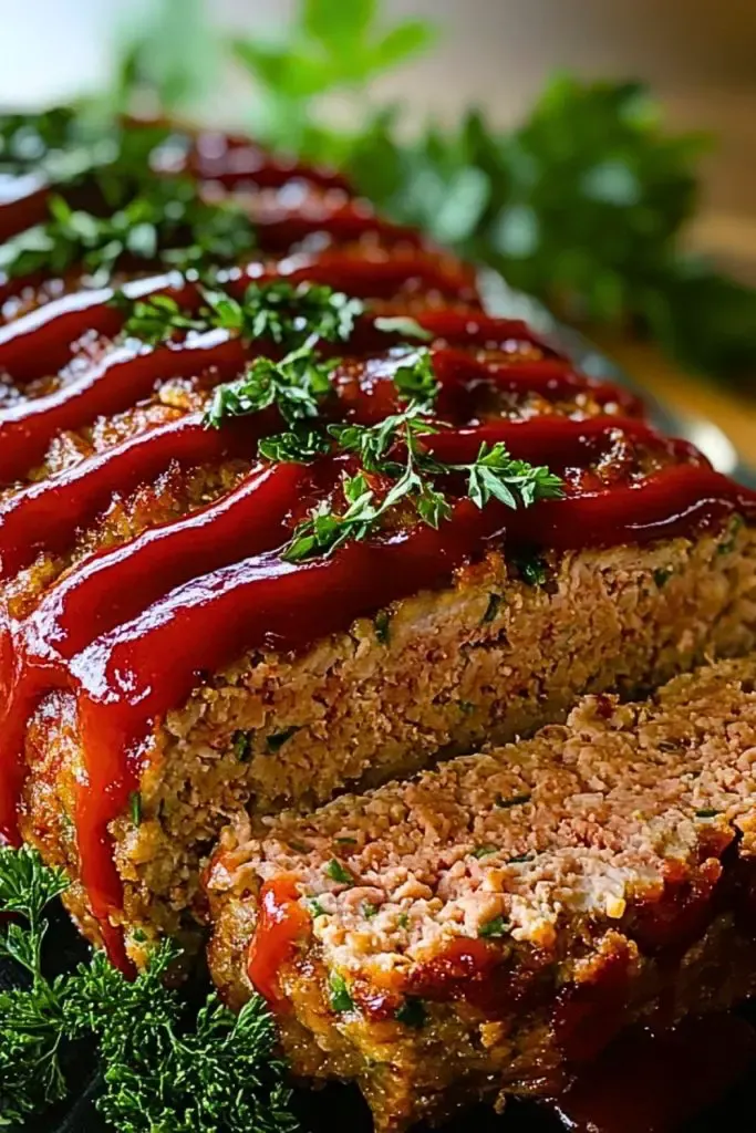 Allow the meatloaf to rest for 10 minutes before slicing. This resting period helps the juices redistribute, resulting in a more tender, flavorful meatloaf. Garnish with extra parsley if desired and serve warm.
