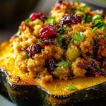 This Turkey Stuffed Acorn Squash recipe is a cozy, fall-inspired meal that combines sweet roasted acorn squash with a savory stuffing made of turkey sausage, apples, cranberries, herbs, and vegetables. It’s a wholesome, flavorful dish that’s perfect for quick dinners, healthy comfort food cravings, or elegant holiday meals. Whether you’re looking for easy dinner ideas, a hearty lunch, or a seasonal food idea that feels festive, this dish delivers everything in one edible bowl.