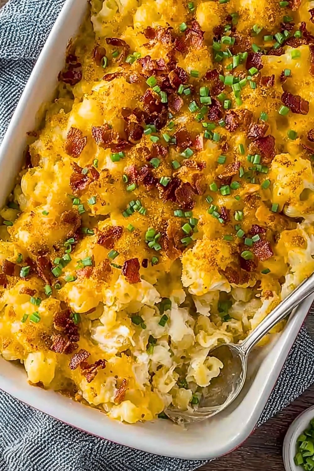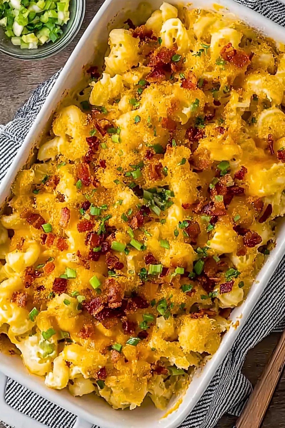 It’s the perfect marriage of two iconic comfort foods: mac and cheese meets loaded baked potato. You get the richness of creamy cheese sauce, the smoky crunch of bacon, and the brightness of green onions all in one bite. It also works wonderfully as a side or main dish, and you can make it ahead of time for easy entertaining.
