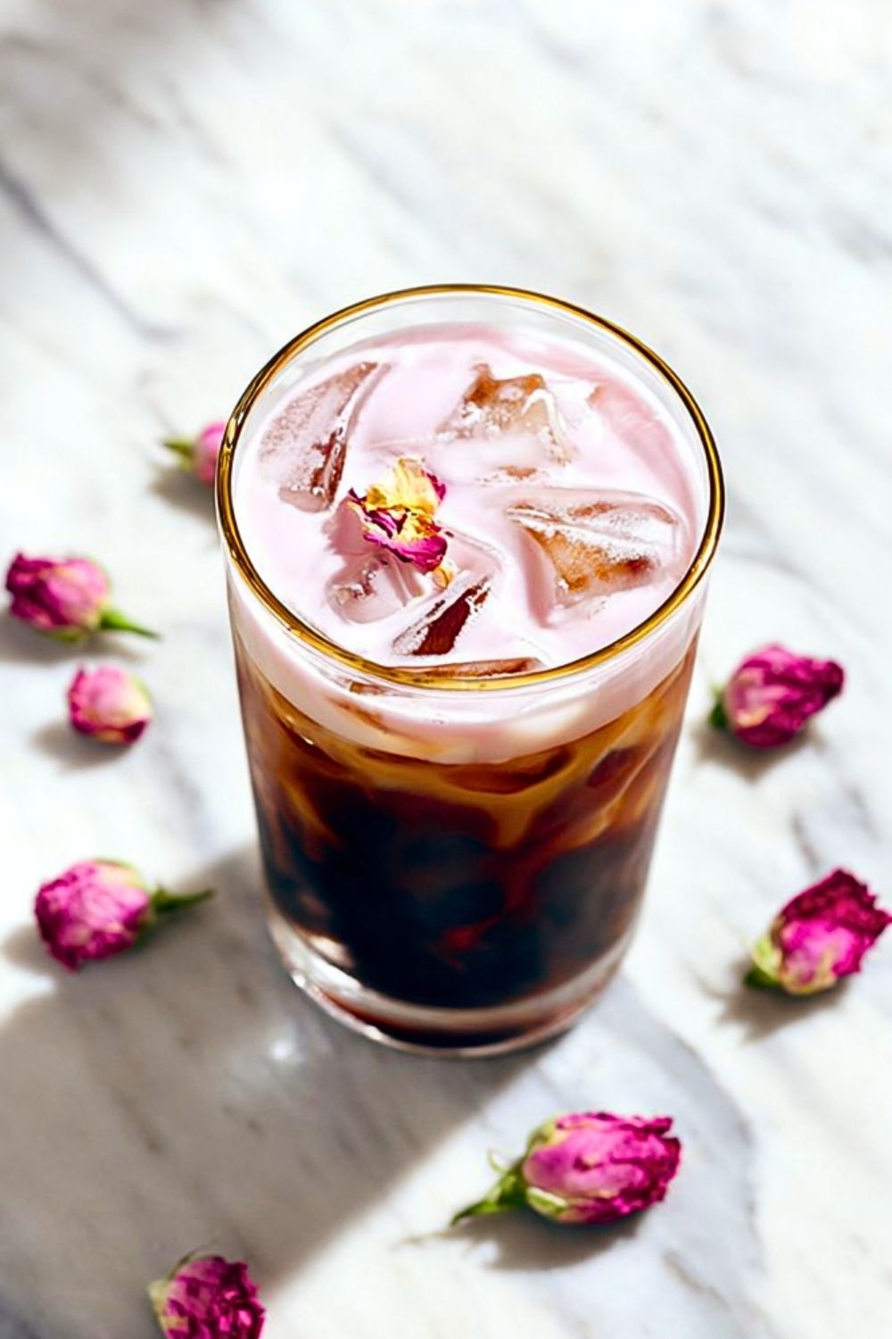 Unlike artificial syrups, using real rose essence or culinary rose water gives the beverage a natural floral aroma that feels light and refreshing rather than overpowering. Combined with vanilla, it creates a harmonious blend that feels both modern and timeless.