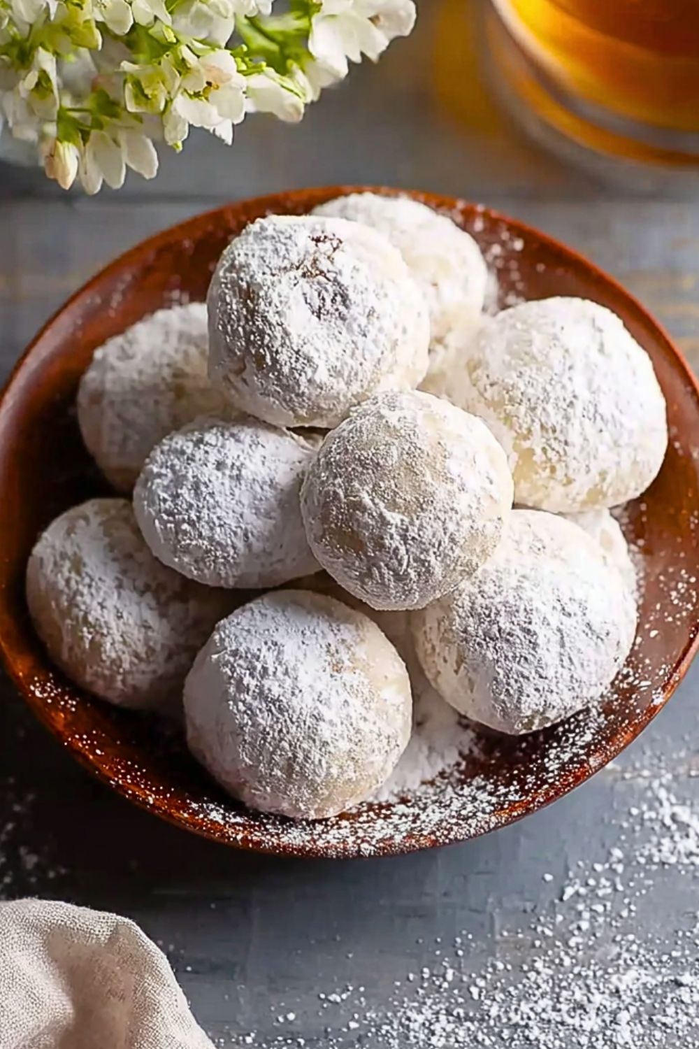 After the cookies have cooled completely on a wire rack, roll them once more in powdered sugar to create that classic snowy finish. Store them in an airtight container to maintain freshness.