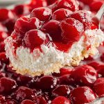 It’s a creamy, dreamy layered dessert with a graham cracker crust, fluffy cream cheese filling, and glossy cherry pie topping that gives it the signature “snowfall” look. It’s sweet, slightly tangy, and perfectly balanced with a bit of crunch and loads of cherry flavor. Whether you’re serving it for a holiday meal or a casual weekend treat, this is one of those dishes that feels both nostalgic and irresistible.