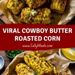 Preheat your oven to 425°F (220°C). Arrange the corn on a baking sheet lined with parchment or foil. Brush generously with the prepared cowboy butter. Roast for about 20–25 minutes, turning halfway through, until the kernels are golden brown and slightly charred.