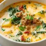If there’s one soup that has become a regular star at my dinner table, it’s Zuppa Toscana. I first fell in love with it after tasting the famous version from Olive Garden, but making it at home has taken that love to the next level. It’s hearty, creamy, and absolutely packed with flavor—from the savory sausage to the tender potatoes and just the right amount of spice.